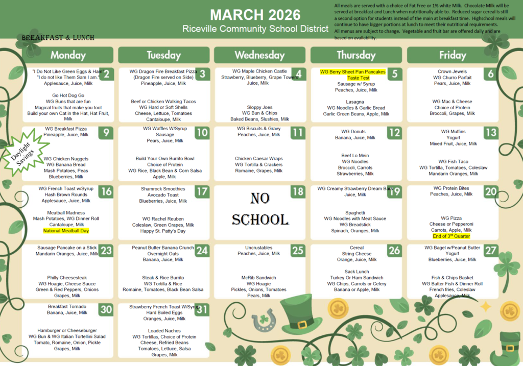 March Breakfast & Lunch Menu